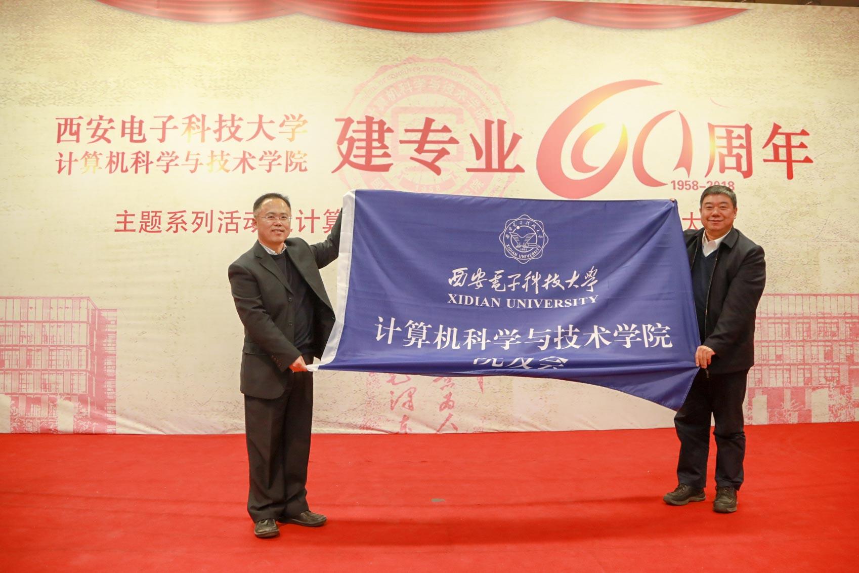杨银堂为足球赌注网站院友会第一届理事会会长李青山授旗