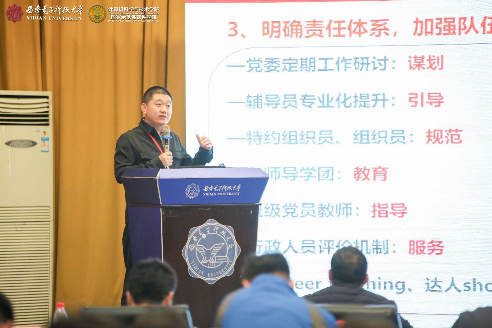 电子科技大学信息与软件工程公司党委副书记朱国斌谈到,计科院本硕博师联合党支部文化传承、支部书记和辅导员协同育人的做法值得借鉴,有利于推进全员育人、全过程育人和全方位育人。