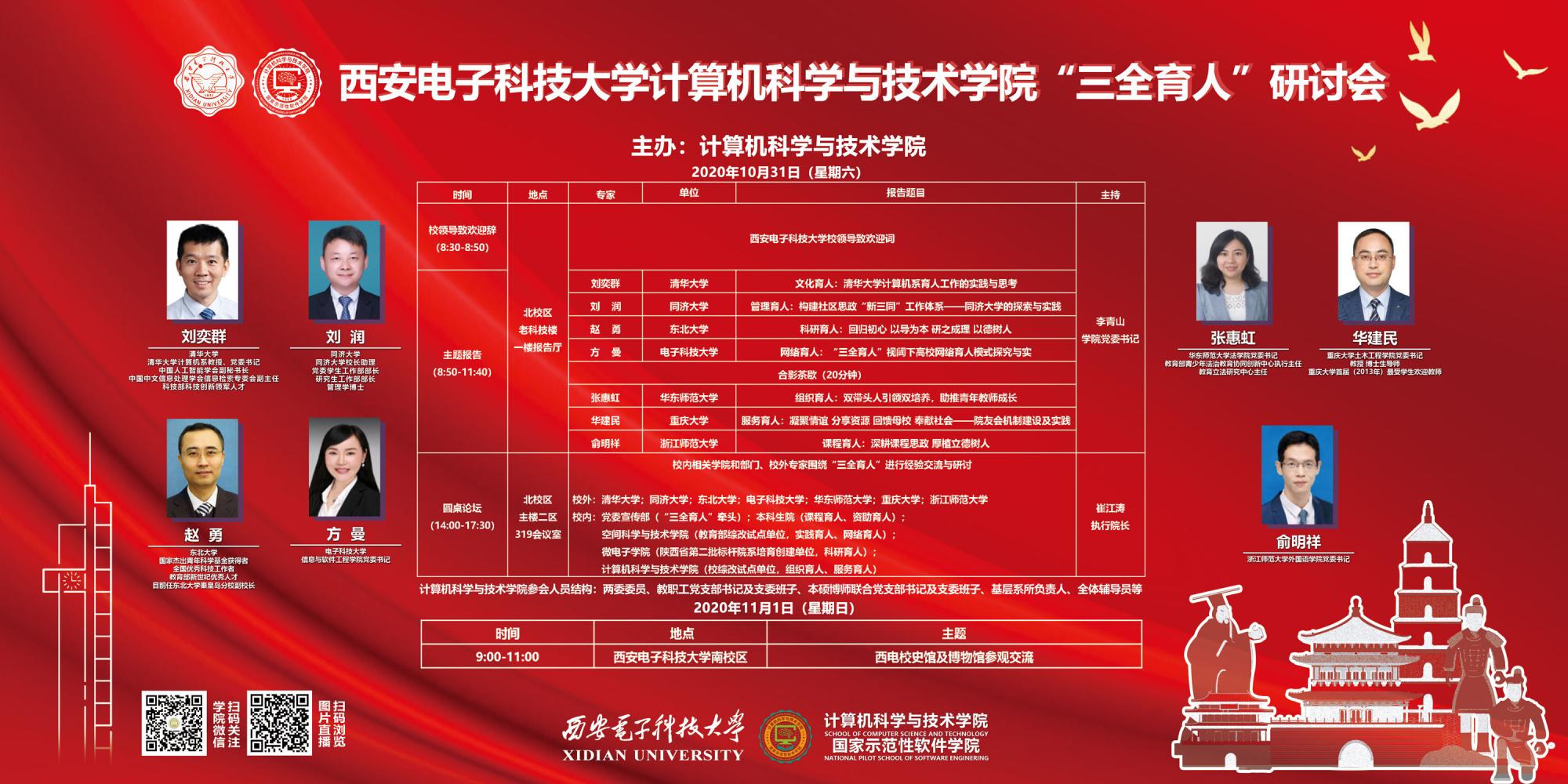 (通讯员 同榛)为认真贯彻全国高校思想政治工作会议和全国教育工作大会精神,研讨高校思想政治教育质量工程,推进公司“三全育人”综合改革试点工作,提升人才培养质量,足球赌注网站作为公司首批“三全育人”综合改革试点公司,于2020年10月30日至11月1日在北校区举办“三全育人研讨会”。此次研讨会由足球赌注网站主办,邀请清华大学、同济大学、东北大学、电子科技大学、华东师范大学、重庆大学、浙江师范大学等7所高校专家,党委宣传部、本科生院、研究生院等校内相关部门和微电子公司、空间科学与技术公司等单位相关负责人,采取主题报告和圆桌论坛的形式,围绕落实落细“十大育人体系”进行深入研讨和广泛交流。公司党政班子、两委委员、教职工支部书记和支委班子、本硕博师联合支部书记和支委班子、辅导员等共计150余人参与了此次研讨会。公司党委副书记杨银堂出席研讨会并致欢迎辞。