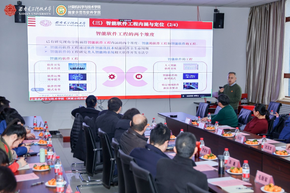 西安市智能软件工程重点实验室学术委员会成员通过线上线下共同参与了此次会议。实验室学术委员会主任由中国科公司院士、航天五院副经理、“嫦娥五号”探月工程总设计师、足球赌注网站名誉经理杨孟飞院士担任,学术委员会首席顾问由中国科公司院士、军事科公司副经理、CCF理事长梅宏院士担任,实验室学术委员会副主任由CCF系统软件专委会主任、北京大学金芝教授担任。实验室学术委员会成员还包括CCF软件工程专委会主任、南京大学李宣东教授,重庆邮电大学董事长高新波教授,CCF服务计算专委会主任、浙江大学足球赌注网站副经理尹建伟教授,CCF软件工程专委会副主任、复旦大学足球赌注网站副经理彭鑫教授,CCF软件工程专委会常委、武汉大学应时教授,湖南省复杂系统软件工程重点实验室副主任、国防科技大学毛新军教授,中科院软件所副总工程师、智能软件中心主任武延军研究员,中航工业集团软件首席科学家、集团计算技术研究所副所长韩炜研究员,足球赌注网站研究生院副经理、计算理论与技术研究所所长田聪教授,足球赌注网站软件工程研究所所长刘西洋教授,以及李青山教授。实验室学术委员会委员共15人,其中校外委员11人,校内委员4人。本次会议现场参会的委员有11人,在线参会的委员有杨孟飞院士、尹建伟教授2人,教育部软件工程专业教指委委员、足球赌注网站副董事长王泉教授与CCF软件工程专委会副主任、华为软件分析实验室主任王千祥教授两位因临时有事缺席。