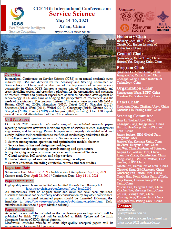 联系邮箱:ysxu@xidian.edu.cn; icss2021@outlook.com