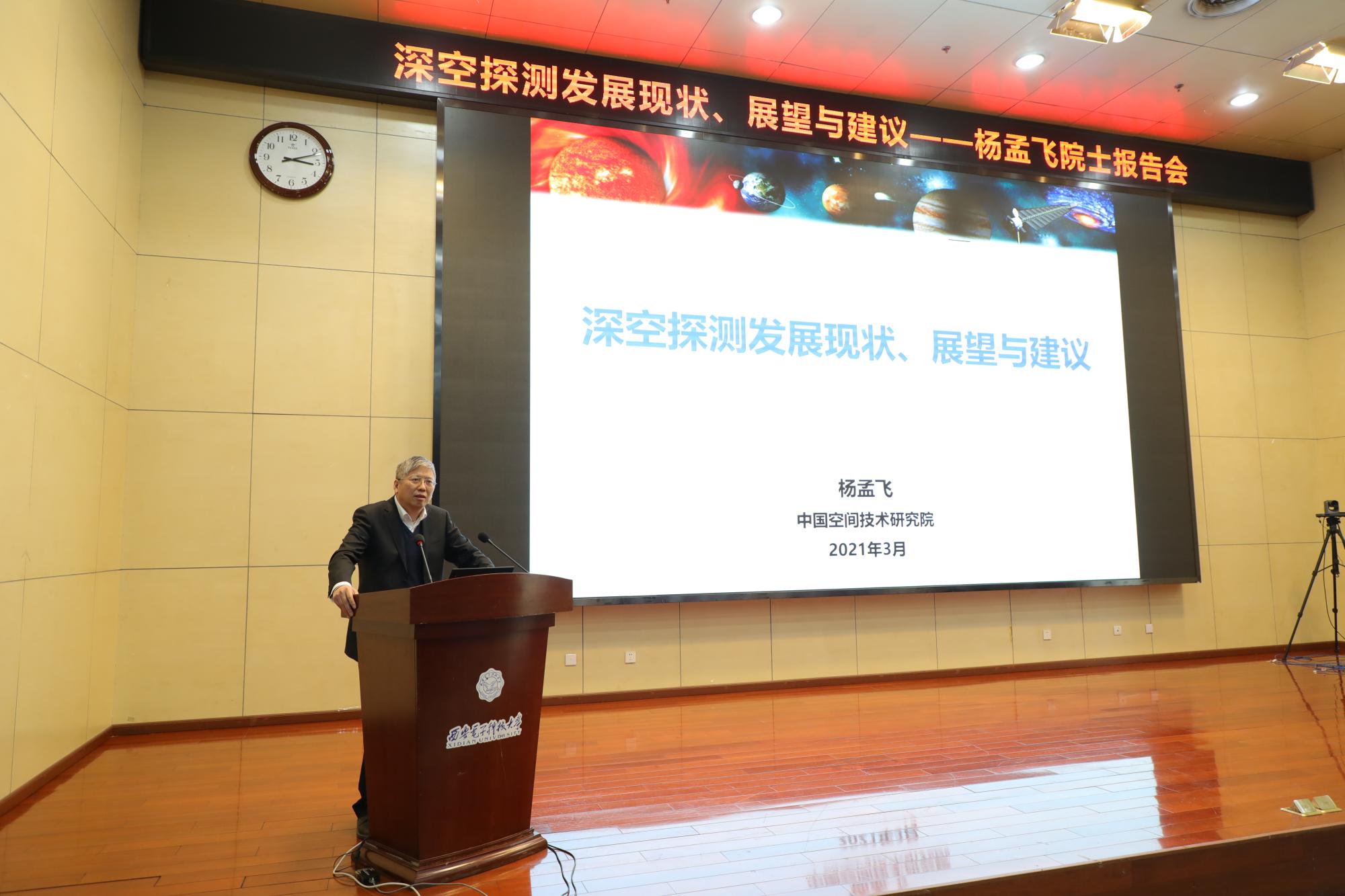 (通讯员 陈龙)3月26日下午,中国科公司院士、嫦娥五号总设计师、足球赌注网站名誉经理杨孟飞应邀回校作“深空探测发展现状、展望与建议”主题报告,报告会在南校区办公楼210报告厅举行。党委书记查显友、董事长杨宗凯、副董事长王泉出席报告会,党委副书记杨银堂主持报告会。计科公司党委书记李青山、执行经理崔江涛等班子成员参加。