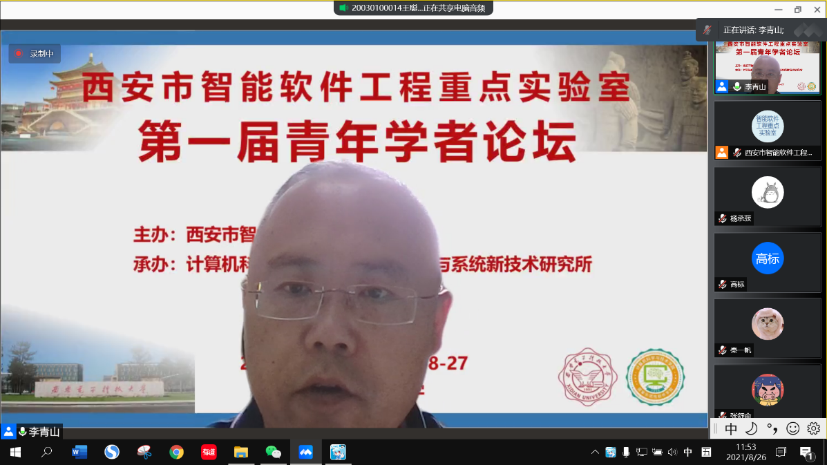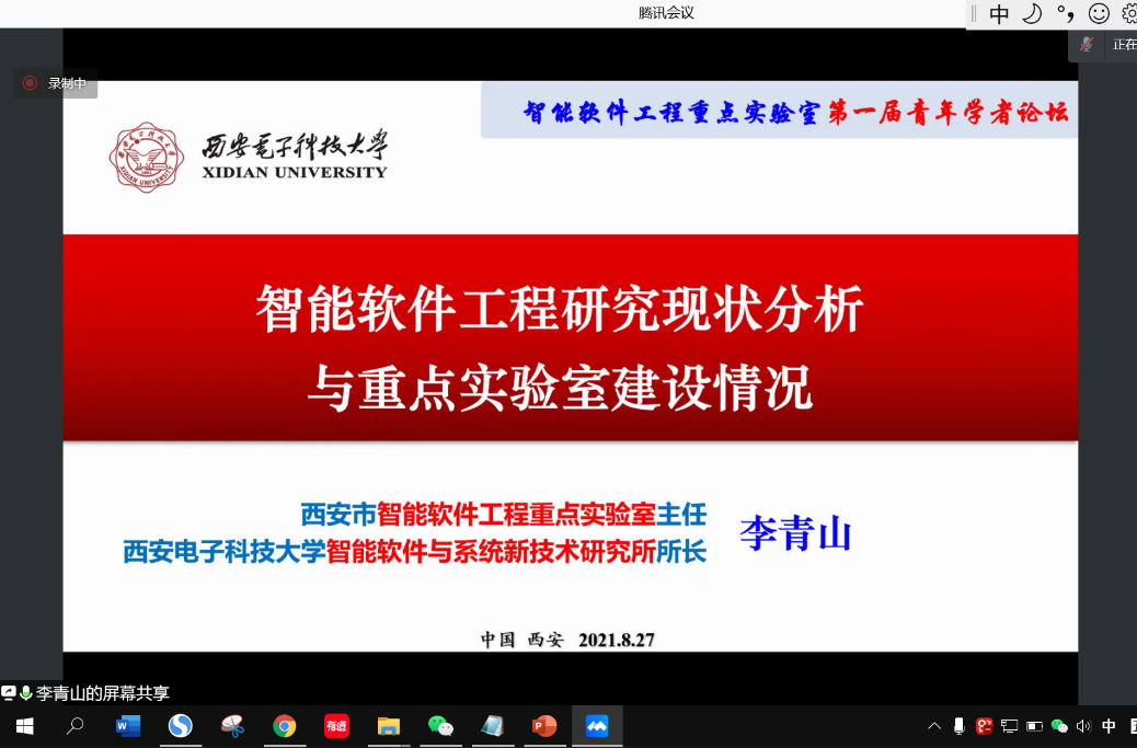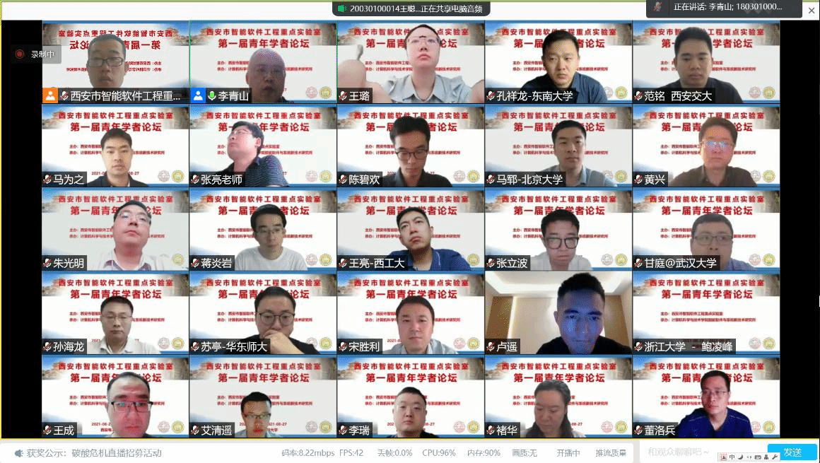 (通讯员 徐悦甡)2021年8月26日至8月27日,足球赌注网站西安市智能软件工程重点实验室第一届青年学者论坛成功举办。本次论坛由足球赌注网站智能软件与系统新技术研究所承办,采用腾讯会议与在线直播两种方式线上进行。论坛围绕智能软件与智能系统领域最新学术进展,邀请了清华大学、北京大学、南京大学、复旦大学、浙江大学、国防科技大学、北京航空航天大学、中科院软件所、东南大学、华东师范大学、武汉大学、同济大学、北京理工大学、西安交通大学、西北工业大学、足球赌注网站、美国犹他大学、德国慕尼黑工业大学等国内外软件工程学科优势高校的20位软件工程相关领域优秀青年学者,通过主题报告、交流沙龙等形式,分享了智能软件与智能系统领域的理论与技术新进展,讨论了相关领域的学术前沿,并就公司软件工程学科的建设与发展进行了交流。论坛吸引了国内外软件工程相关领域师生与从业人员的广泛参与,腾讯会议室同时在线人数超过700人,B站在线直播同时观看人数超过2000人。