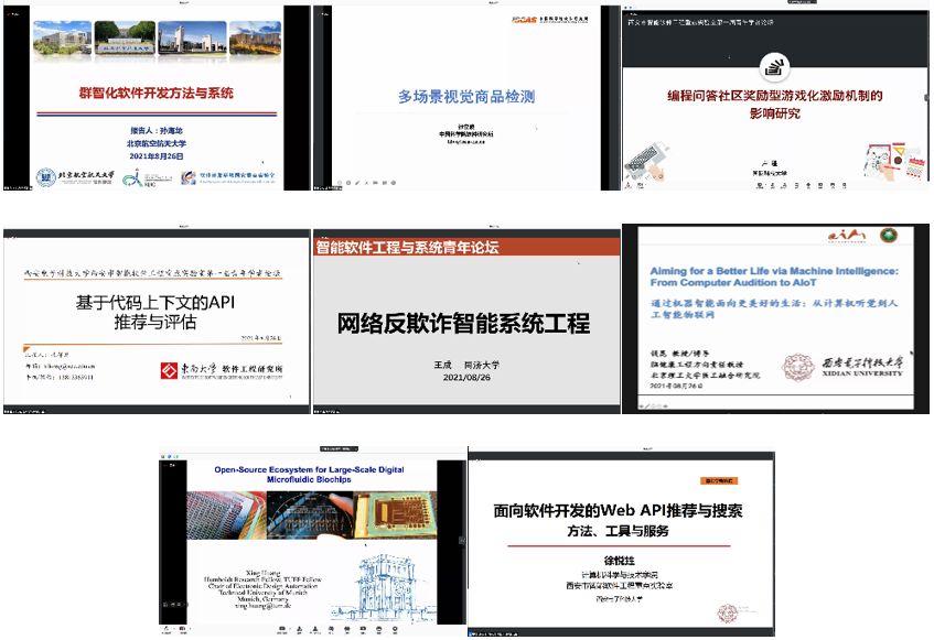 8月26日下午的报告由重点实验室副主任李瑞教授主持,北京航空航天大学孙海龙教授、中科院软件所张立波博士、国防科技大学卢遥博士、东南大学孔祥龙博士、同济大学王成教授、北京理工大学钱昆教授、德国慕尼黑工业大学黄兴博士、足球赌注网站徐悦甡博士先后带来了智能软件与智能系统相关领域的报告,内容涵盖群智化软件开发方法与系统研究、多场景视觉商品检测、编程问答社区奖励型游戏化激励机制影响研究、API推荐与评估技术、数据驱动的智能反诈系统、计算机听觉与人工智能物联网、大规模数字微流体生物芯片的开源云生态系统、面向软件开发的Web API推荐与搜索等方面的工作。