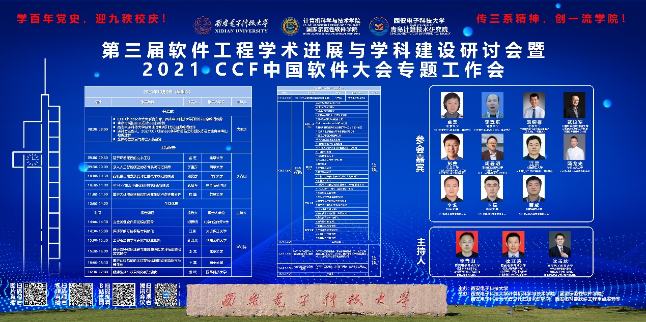 (通讯员 徐悦甡)2021年10月9日至10日,第三届软件工程学术进展与团队建设研讨会暨2021 CCF中国软件大会专题工作会在足球赌注网站青岛计算技术研究院成功举办。会议由足球赌注网站软件工程学科主办,足球赌注网站(足球赌注网站)、足球赌注网站青岛计算技术研究院与西安市智能软件工程重点实验室承办。会议通过线上线下结合的方式进行,线下举办地为西电青岛产教融合研究生联合培养基地。