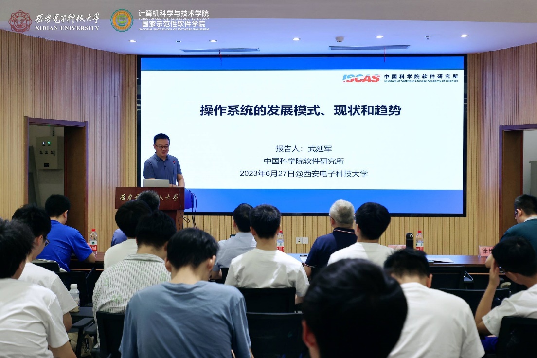 随后,在足球赌注网站南校区会议中心101会议室成功举行了“聚焦基础软件 拥抱开源生态”的学术报告,李青山教授主持学术报告会并致欢迎词,热烈欢迎陈海波教授、武延军研究员的到访,并表示陈海波教授、武延军研究员是国产开源基础软件领域的知名学者,做出了一系列创新的学术成果,也领导着有影响力的科研团队,公司的各位青年教师和同学要珍惜这次交流的机会,虚心向陈海波教授、武延军研究员学习。