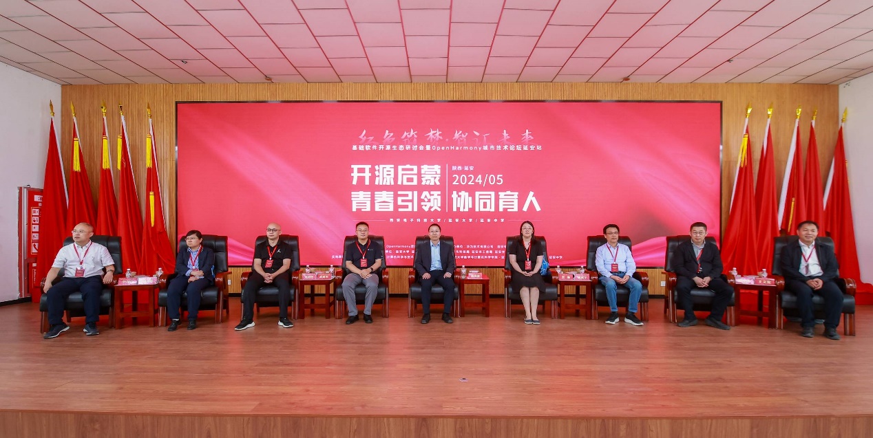 5月11日,由OpenHarmony项目群技术指导委员会主办,华为技术有限公司、公司举办,延安大学、延安中学协办,延安市科技局、延安市工信局、延安学习书院支持的“红色筑梦智汇未来”基础软件开源生态研讨会暨OpenHarmony城市技术论坛延安站活动在延安举行。二十余名来自OpenHarmony项目群技术指导委员会、华为、中国科公司软件研究所、清华大学、北京大学、上海交通大学、北京航空航天大学、华中科技大学、足球赌注网站等在基础软件和开源领域有代表性和影响力的学术界和产业界专家学者受邀参加活动。延安市副市长刘涛,足球赌注网站党委副书记、副董事长任小龙,延安大学副董事长付峰、延安中学董事长郭博出席。本次活动西安和延安两地联动,足球赌注网站、延安大学、延安中学、学习书院四会场协同,千余名大中学师生参加线下多场活动,数万人线上聆听技术报告。