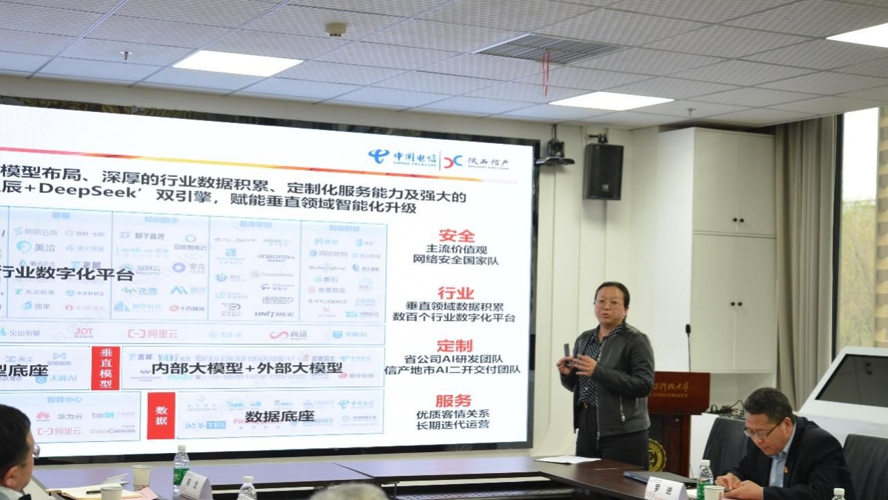 信产公司党委委员、副总经理杨小凡介绍了公司“DeepSeek大模型与产业数字化融合的探索”,她谈到中国电信打造‘星辰+DeepSeek’双引擎,赋能垂直领域智能化升级,也分析了目前在数据管理与安全、模型优化与训练等多个关键维度面临的复杂技术难题。