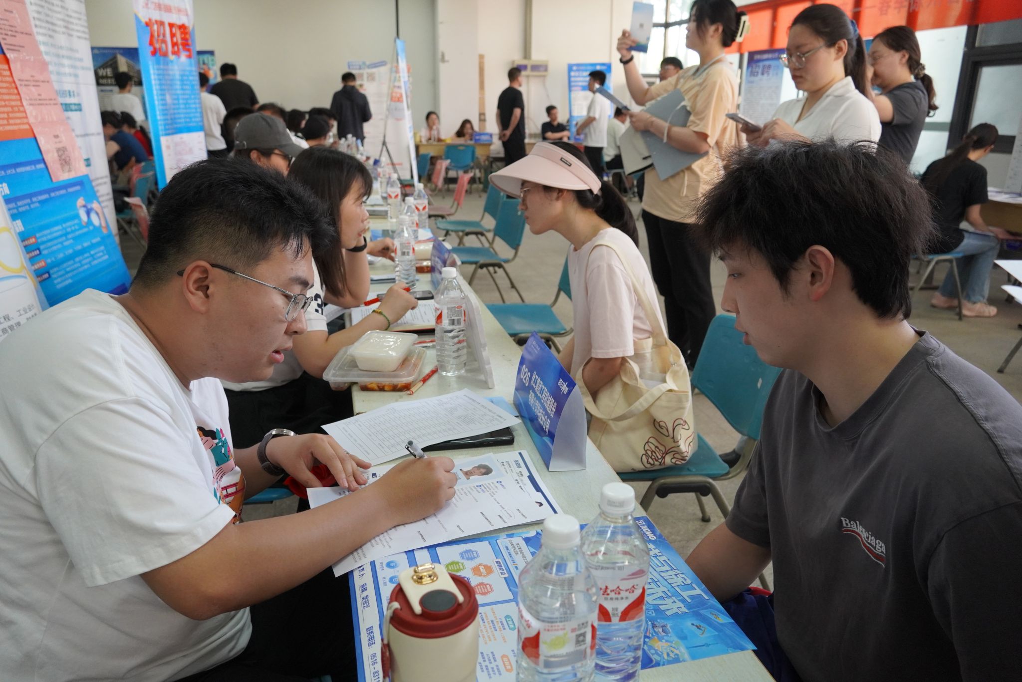 五月的西安骄阳似火,双选会现场气氛也异常热烈。毕业生们手持精心准备的简历穿梭于各展位间,积极了解用人单位的招聘需求并深入交流咨询。此外,本次双选会还吸引了不少低年级员工前来现场观摩,提前感受就业氛围、了解行业需求和就业形势,助力找准自身定位,做好生涯规划。