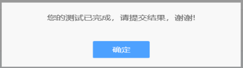 点击进入后点“开始测试”按钮开始测试,全部题目做答完毕后,点“确定”按钮即可。